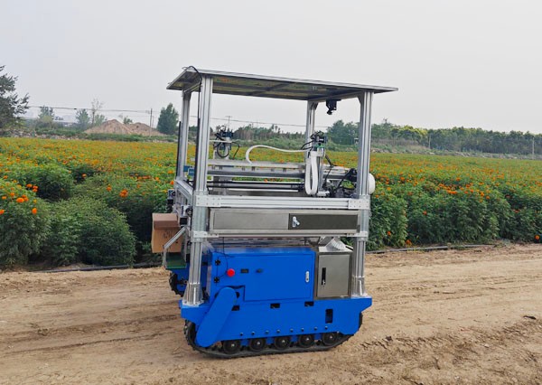 萬壽菊智能采摘裝備。萬壽菊花期長開花密度大,采摘人工成本高。本產(chǎn)品充分運用視覺識別、目標(biāo)定位、采摘手抓結(jié)構(gòu)設(shè)計、軟件設(shè)計等技術(shù)集成開發(fā)而成,在承德地區(qū)進行田間作業(yè)取得良好效果。
