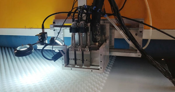 自粘式防排水板自動涂膠設(shè)備。 通過視覺識別引導噴膠機動作,實現(xiàn)快速、精確噴膠,在滿足產(chǎn)品使用要求基礎(chǔ)上,減少了自粘膠用膠量,降低了工人勞動強度,提高了產(chǎn)品質(zhì)量,為企業(yè)創(chuàng)造更多的利潤。