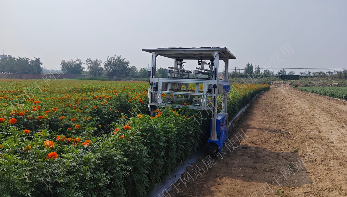萬壽菊智能采摘裝備。萬壽菊花期長開花密度大,采摘人工成本高。本產(chǎn)品充分運(yùn)用視覺識別、目標(biāo)定位、采摘手抓結(jié)構(gòu)設(shè)計(jì)、軟件設(shè)計(jì)等技術(shù)集成開發(fā)而成,在承德地區(qū)進(jìn)行田間作業(yè)取得良好效果。